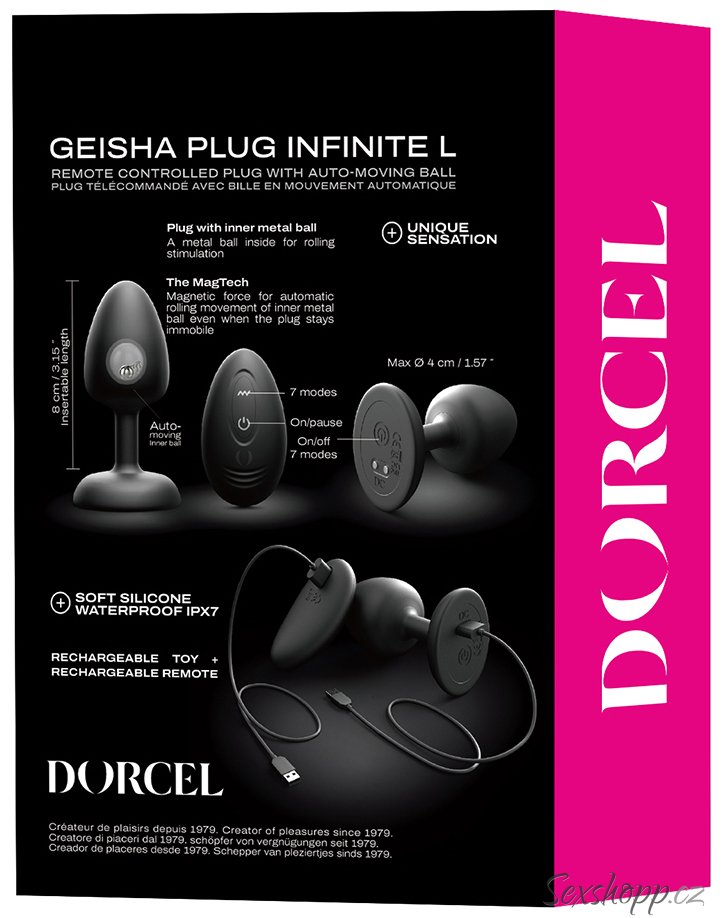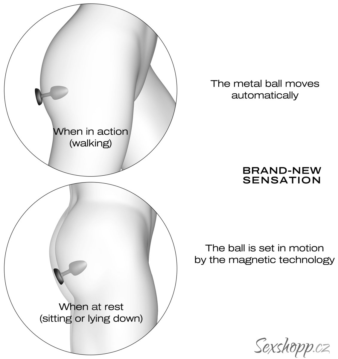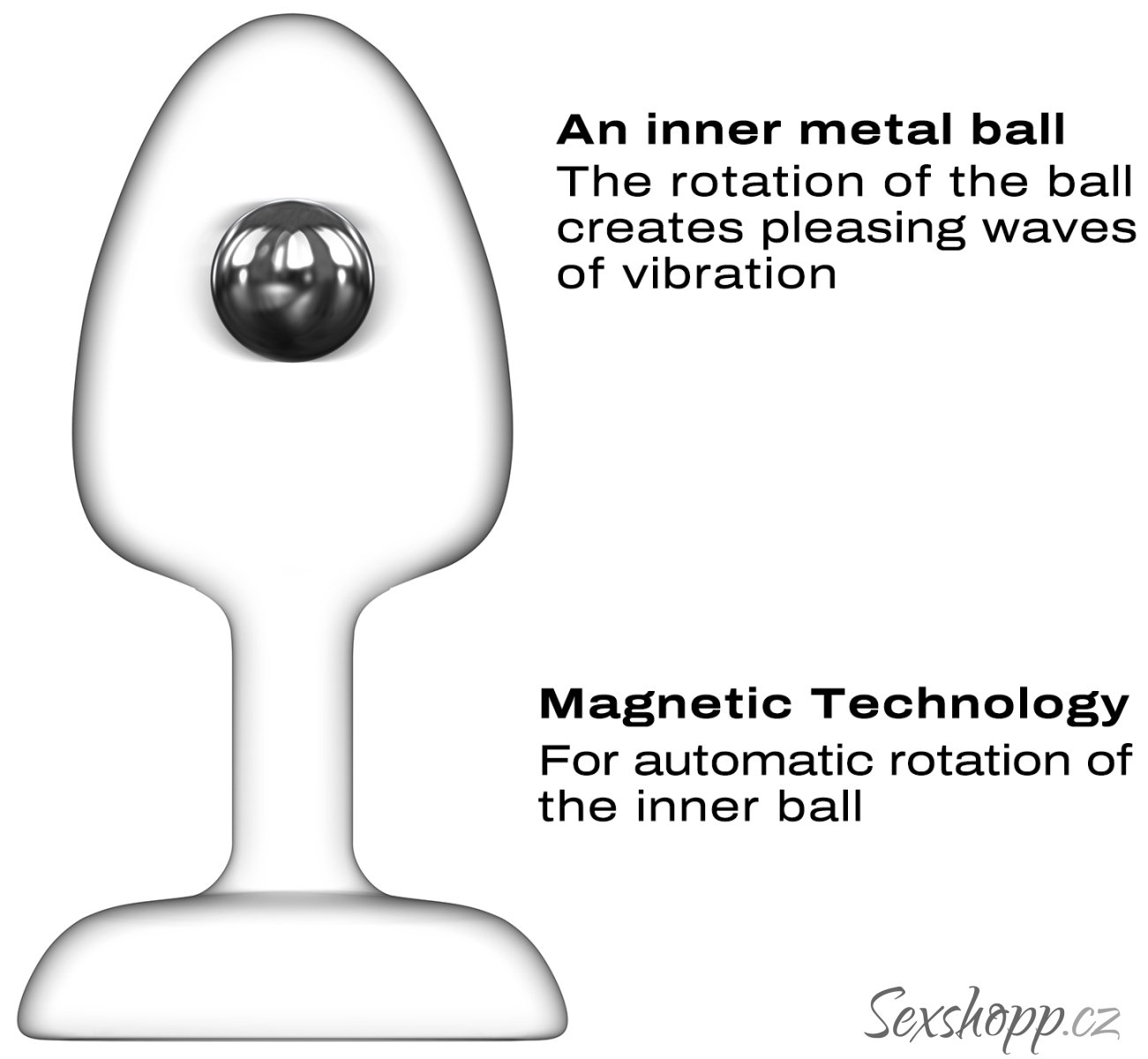 Anální kolík má unikátní typ stimulace MagTech – uvnitř se ukrývá kovová kulička, která se pomocí magnetu rozpohybuje, naráží do stěn kolíku a tím je rozechvívá.