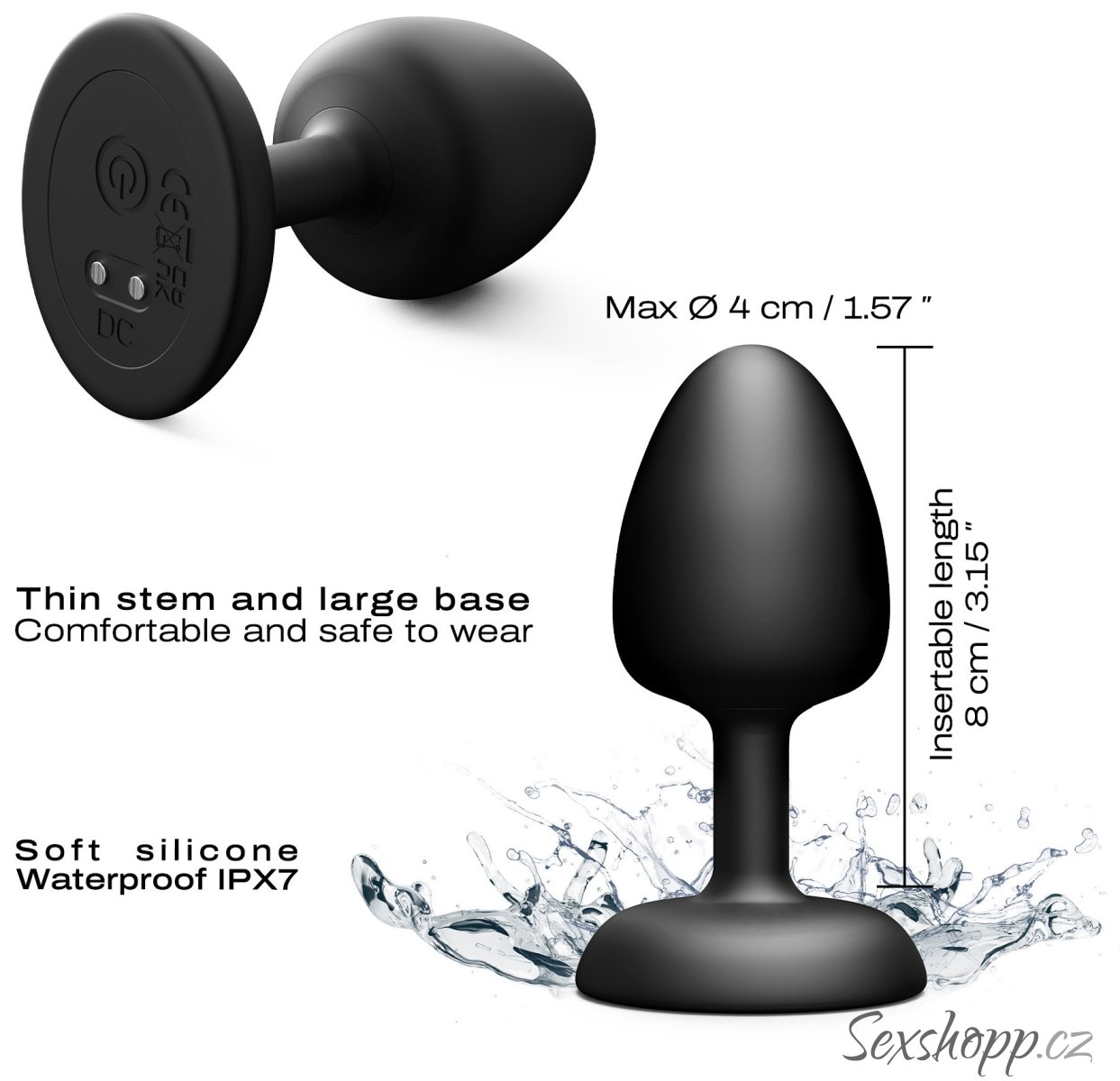 Kolík má praktickou anální zarážku pro bezpečné hry, není ohebný a je vyrobený ze silikonu, který je pevný na dotek, bezpečný pro lidské tělo a příjemný na omak.