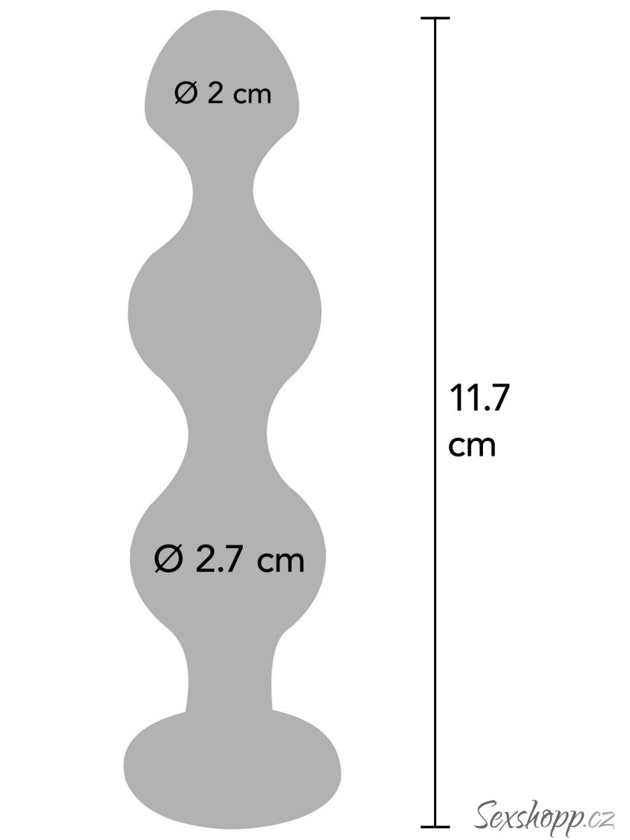 Anální kuličky se díky výrazně tvarovanému tělu postarají o intenzivní stimulaci análního otvoru. Základna je ozdobená čirým šperkem. Malý průměr je ideální pro všechny, kteří nemají rádi velké hračky, nebo nemají moc zkušeností s anální stimulací.  Více