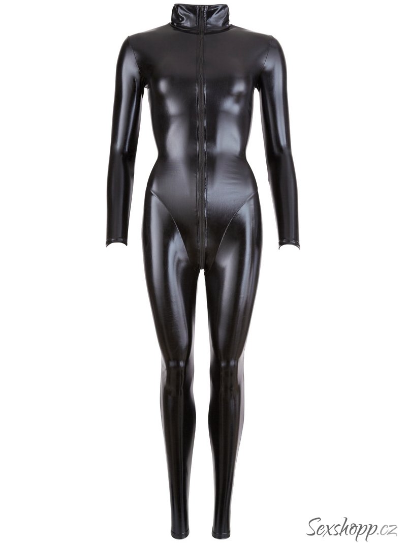 Celotělový lesklý overal s dlouhým dvoucestným zipem Cottelli