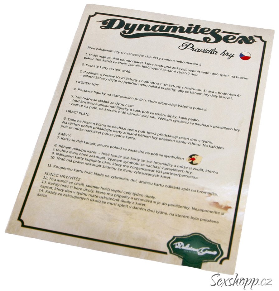 Okořeňte své milostné hrátky v ložnici i mimo ni. V erotické hře Dynamite Sex najdete různé pikantní a romantické úkoly, které můžete plnit hned, nebo během celého týdne.