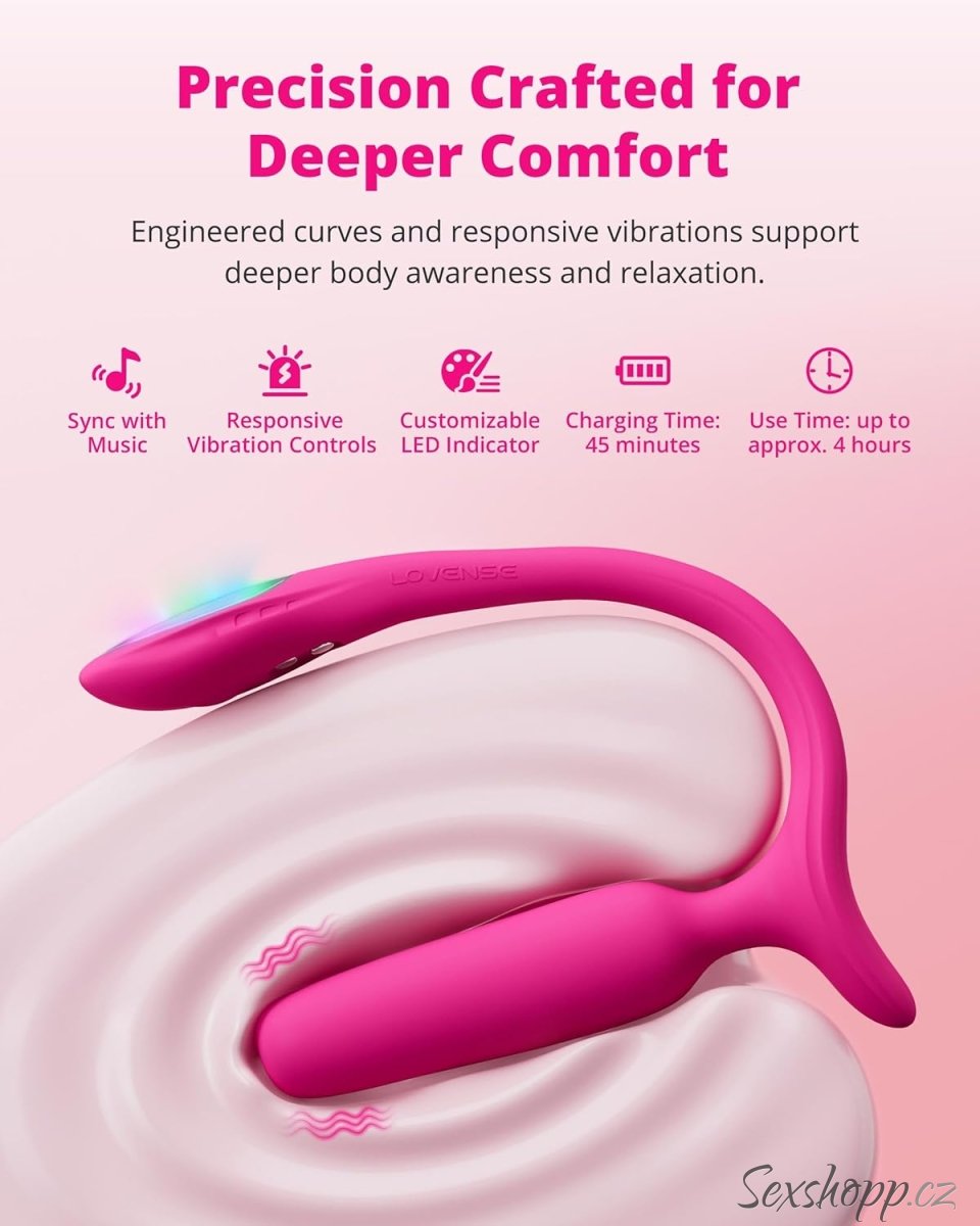 Při ovládání tlačítkem vám nabídne 7 vibračních programů (3 intenzity vibrací a 4 vibrační vzory, po nastavení v mobilní aplikaci až 10 vzorů).