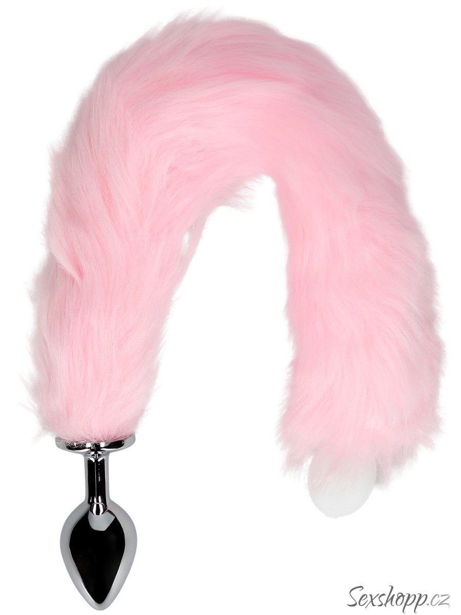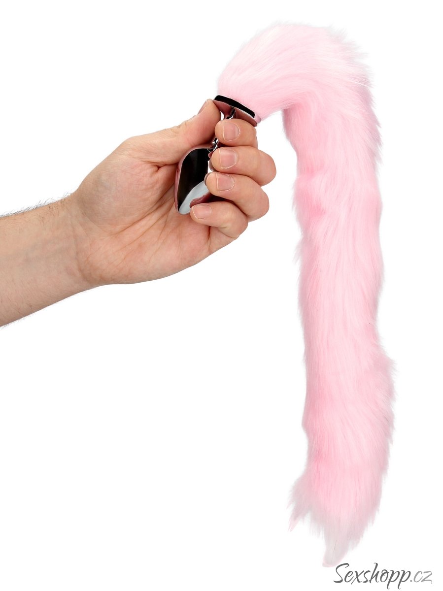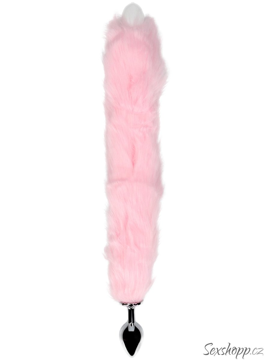 Kovový anální kolík se svítícím liščím ocáskem, růžový