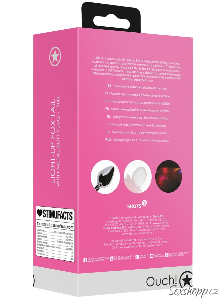 Anální kolík s liščím ocáskem je bezpečný pro anální hrátky a v zadečku se udrží i během pohybu. V ocásku jsou zabudované různobarevné LED.