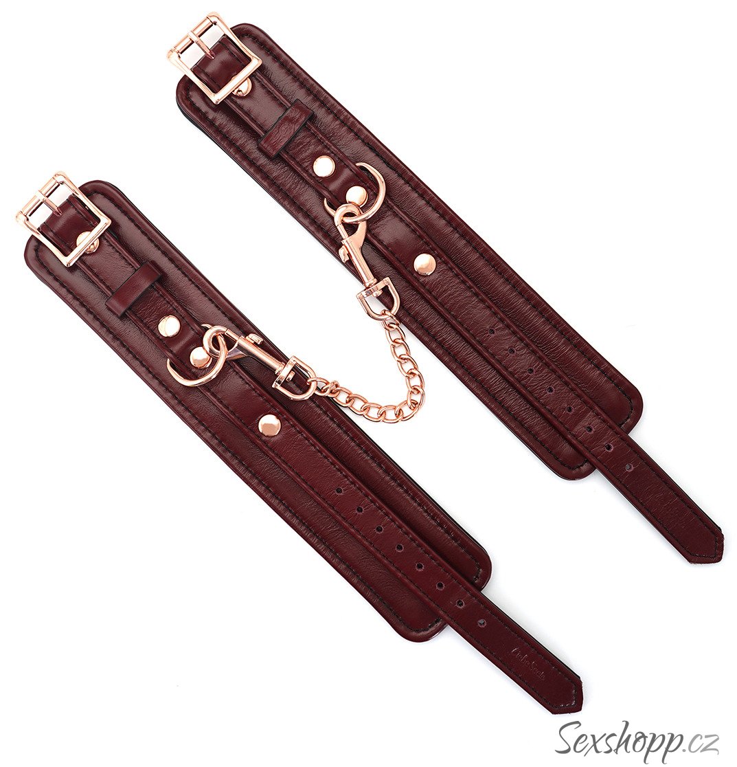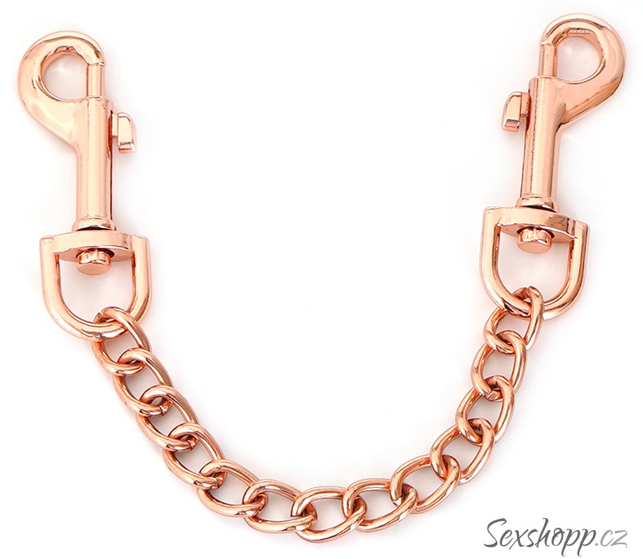 Jsou spojená řetízkem s karabinkami a mají zapínání na kovovou přezku. Více