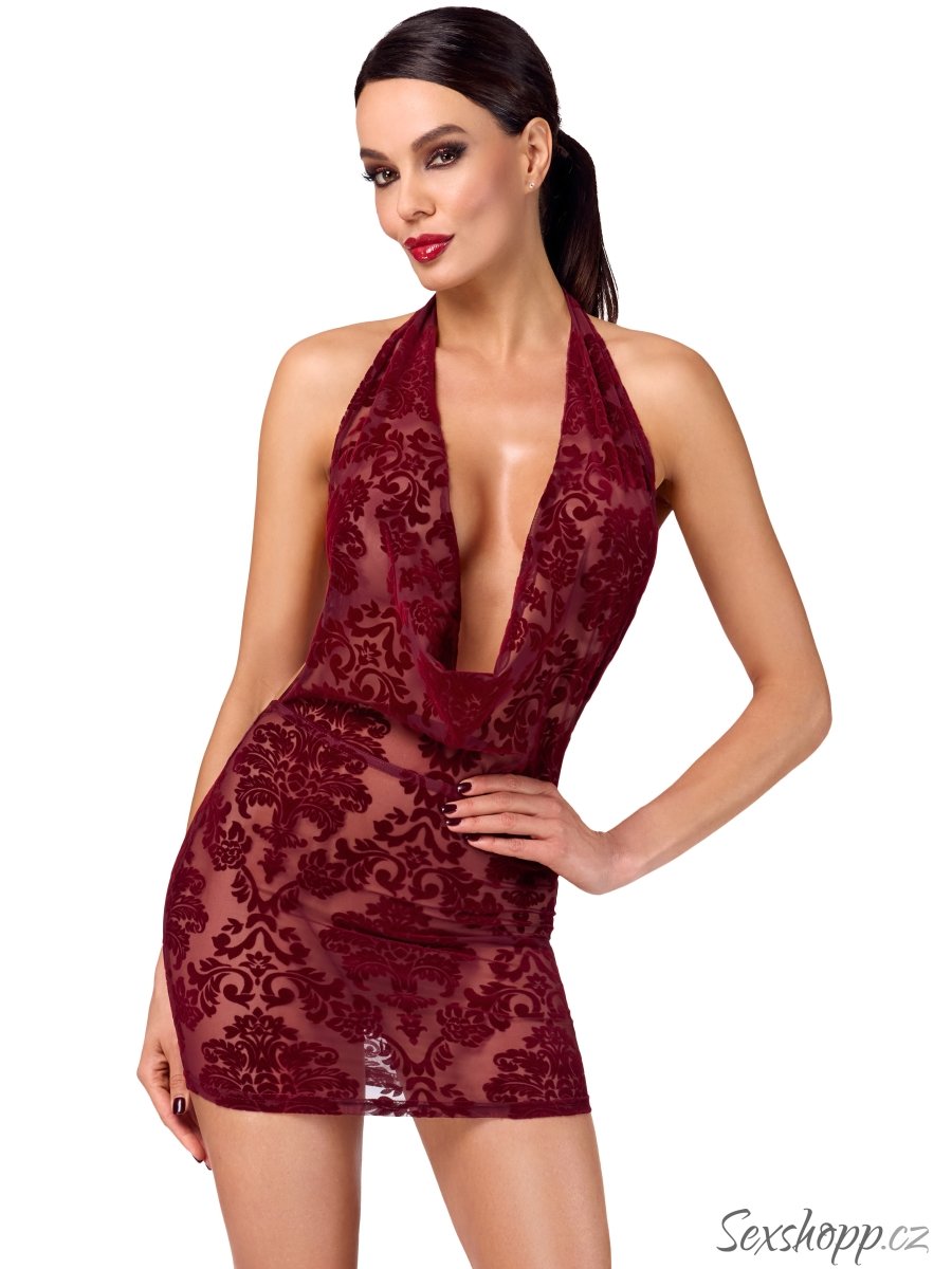 Minišaty jsou ušity z měkké a elastické průsvitné látky s květinovým sametovým potiskem. Díky pružnosti látky se přizpůsobí křivkám těla a pohodlně se nosí.