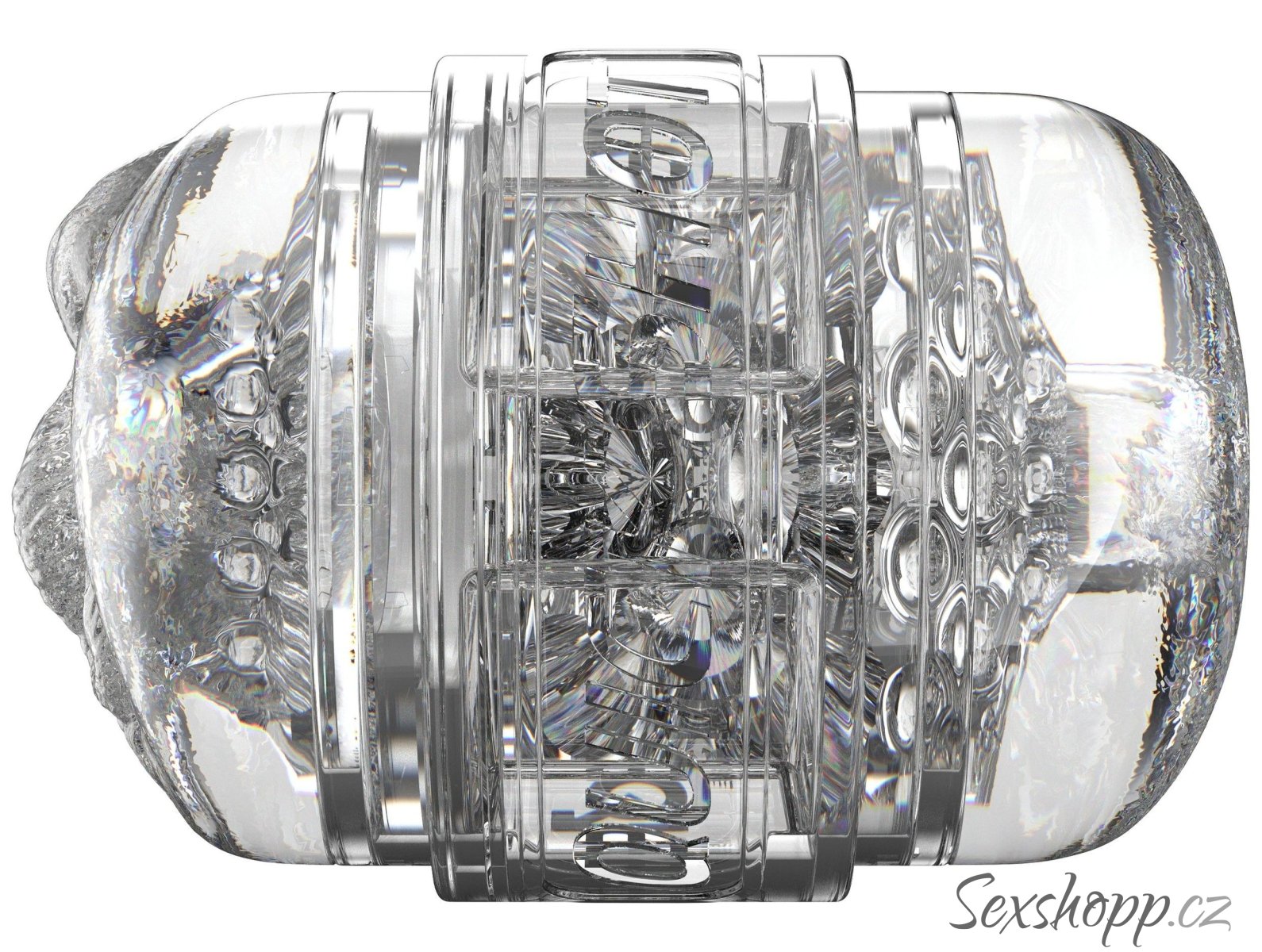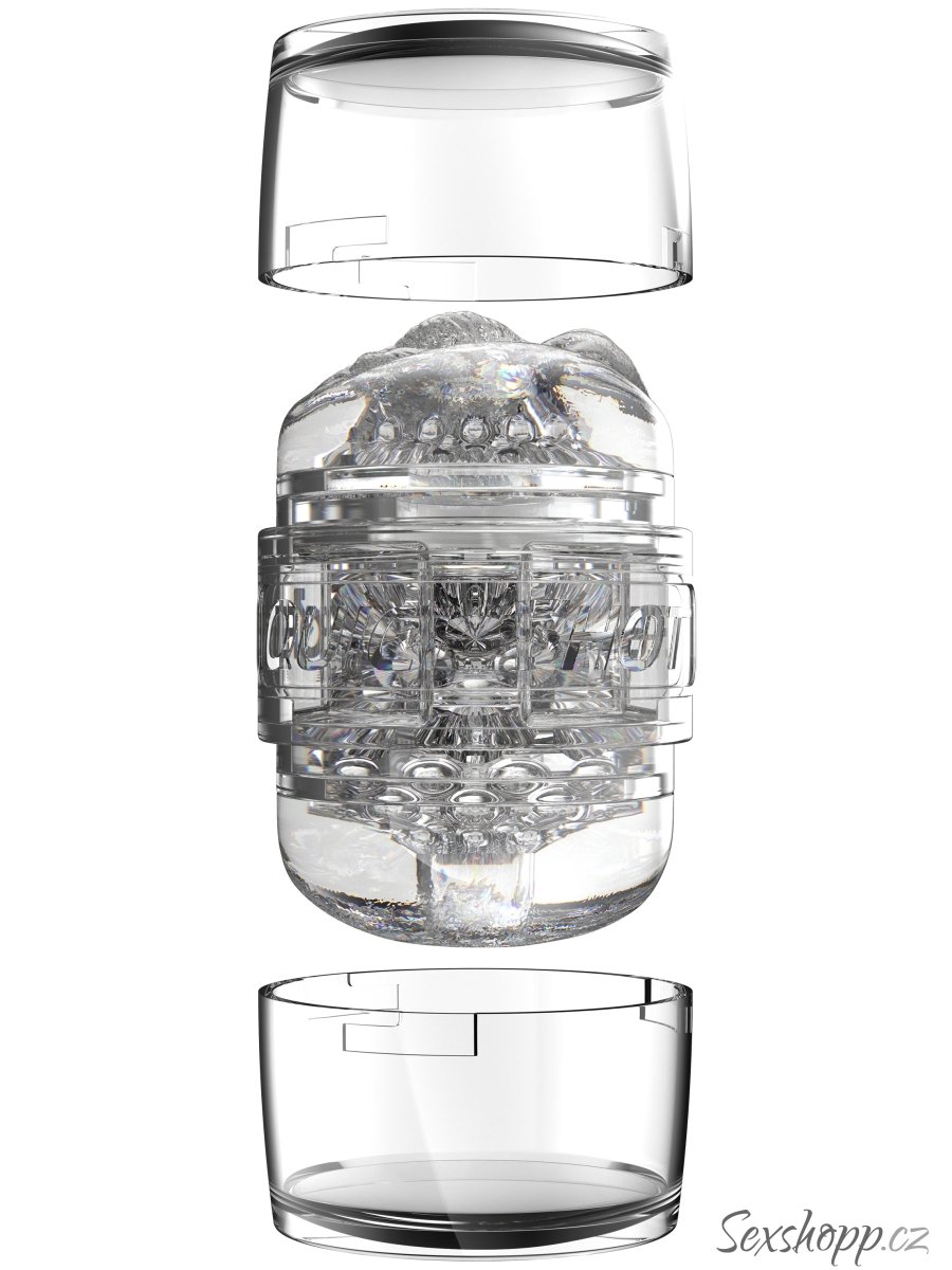 Průsvitné pouzdro z tvrdého plastu se dobře drží v ruce a navíc umožňuje sledovat váš penis v akci. Vnitřní vložku chrání dvě víčka a lze ji z pouzdra snadno vyjmout a vyčistit.