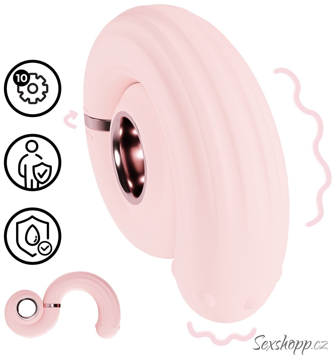 Vibrátor má 1 řadu rotačních perliček, pomocí kterých promasíruje bod G. Díky otočnému mechanismu se hodí se i na cesty – snadno zmenšíte jeho velikost.
