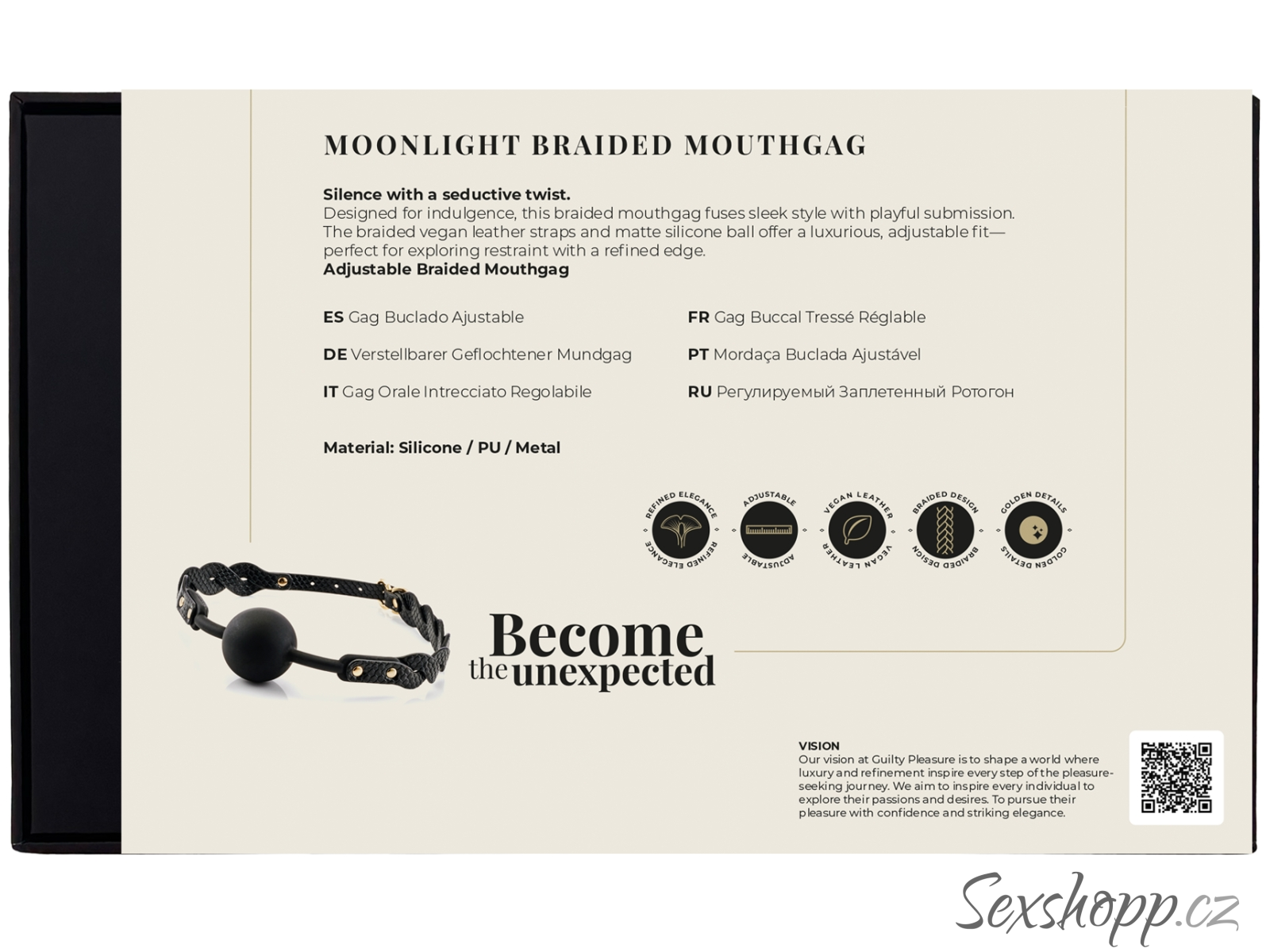 Roubík má pletený texturovaný design a zlaté detaily – poslouží jako elegantní pomůcka pro něžné a stylové BDSM hry.
