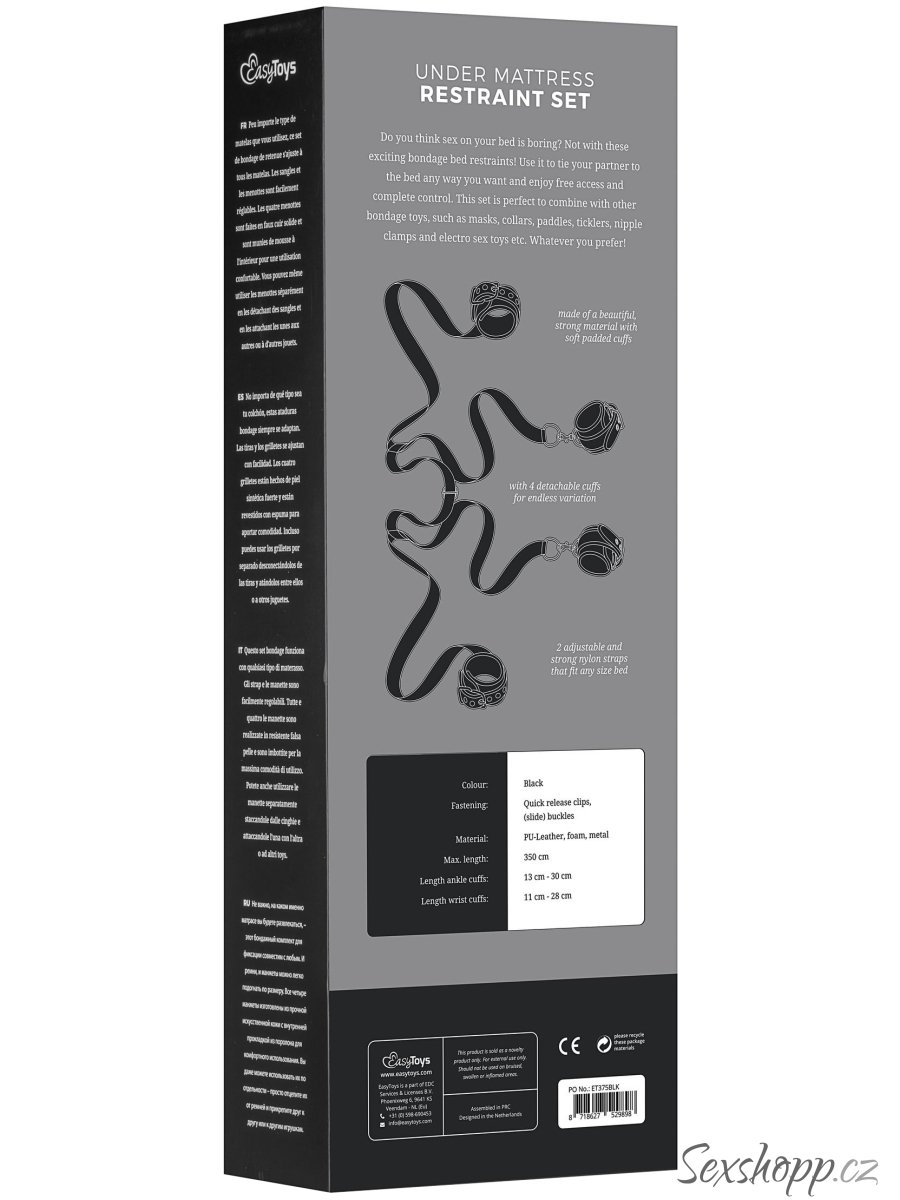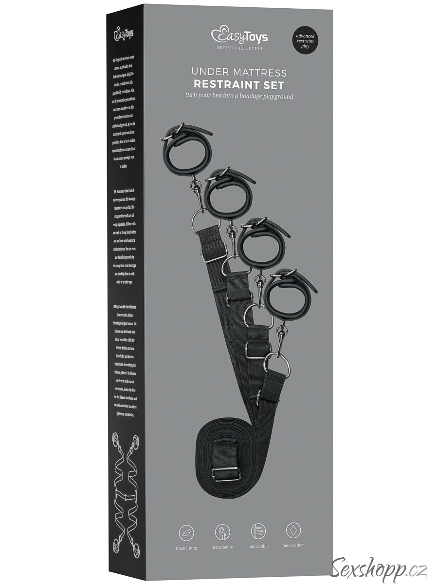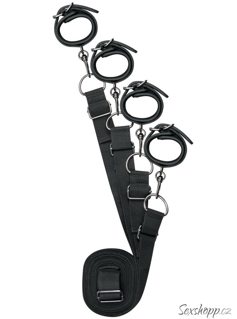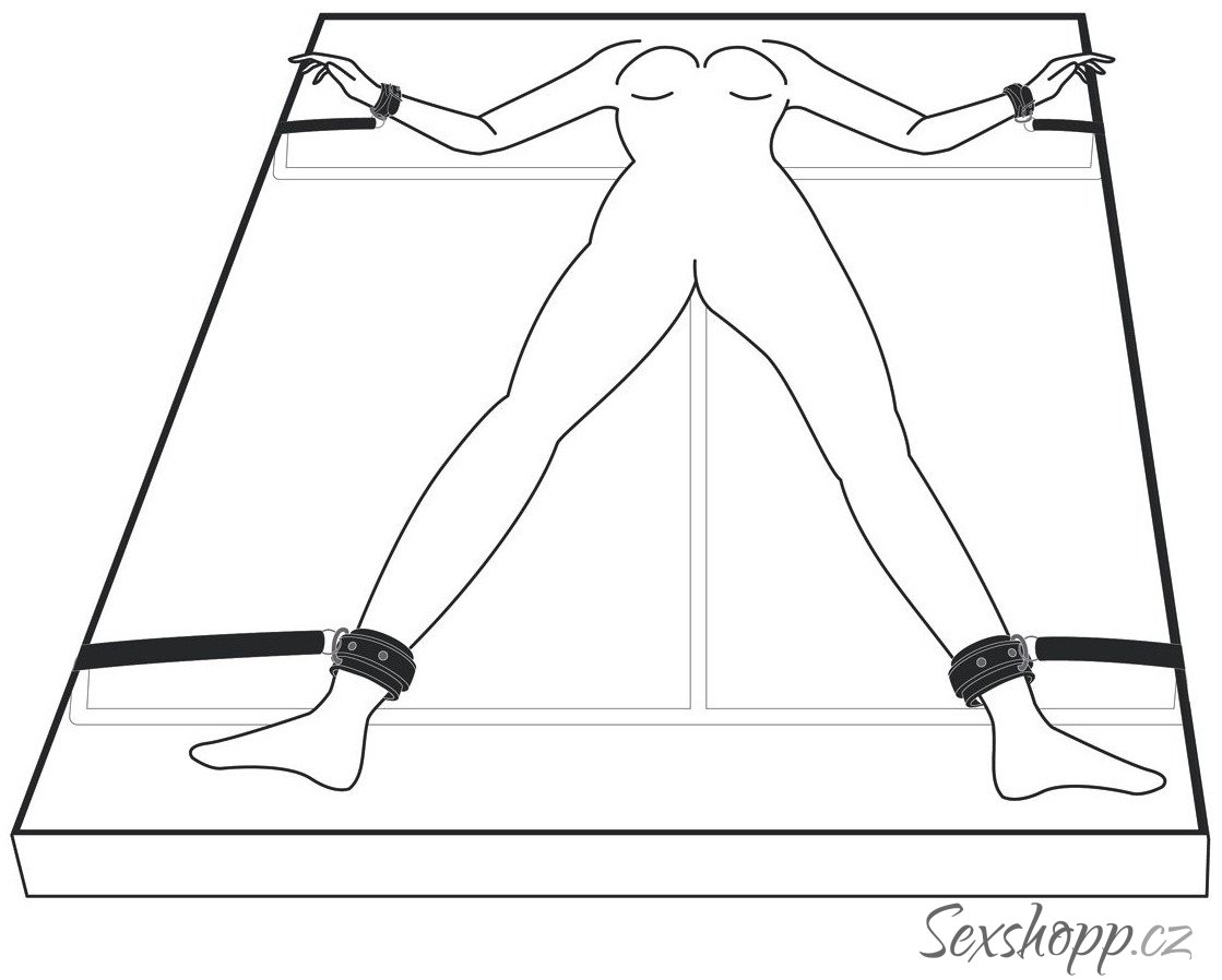 Použití je jednoduché. Vložte popruhy pod matraci tak, aby pouta volně visela po stranách. Poté nechte svého partnera lehnout si na postel a svažte mu ruce a kotníky pouty.