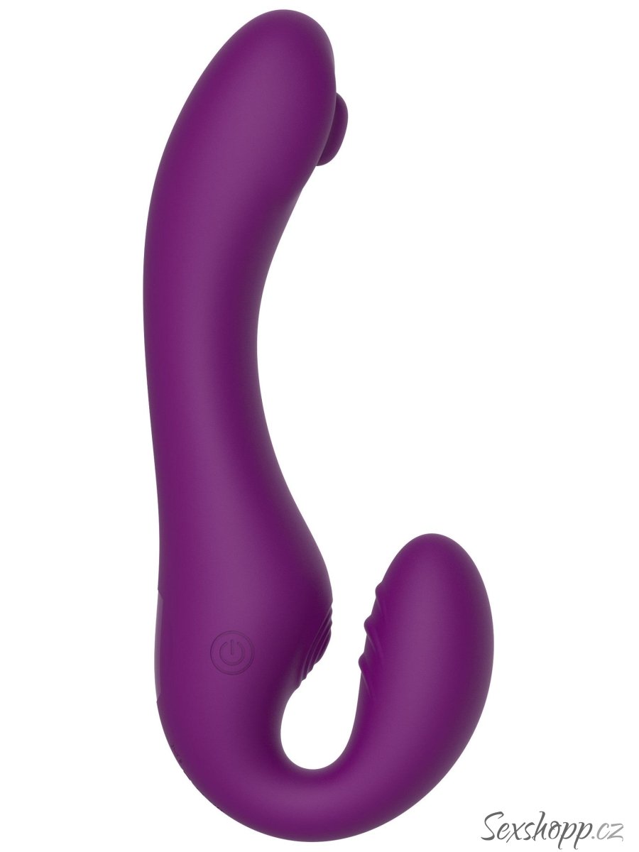 Samodržící strapon drží na místě bez popruhů a potěší oba dva v páru – hlavní část pulzuje, vaginální kolík a část pro stimulaci klitorisu vibrují.