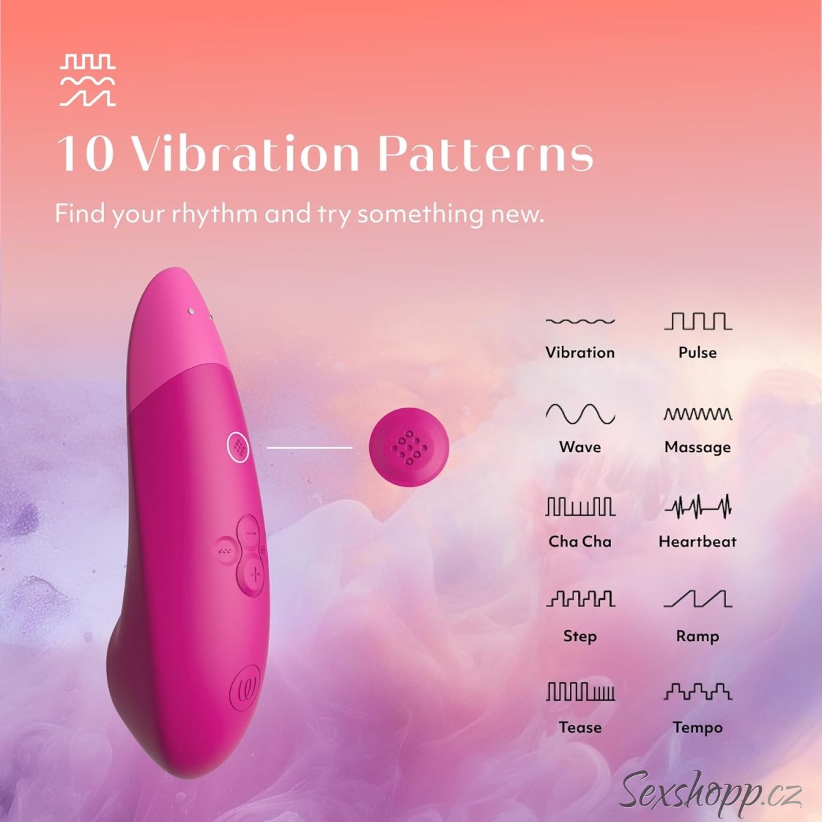 10 intenzit pulzace i vibrací + 10 vibračních programů