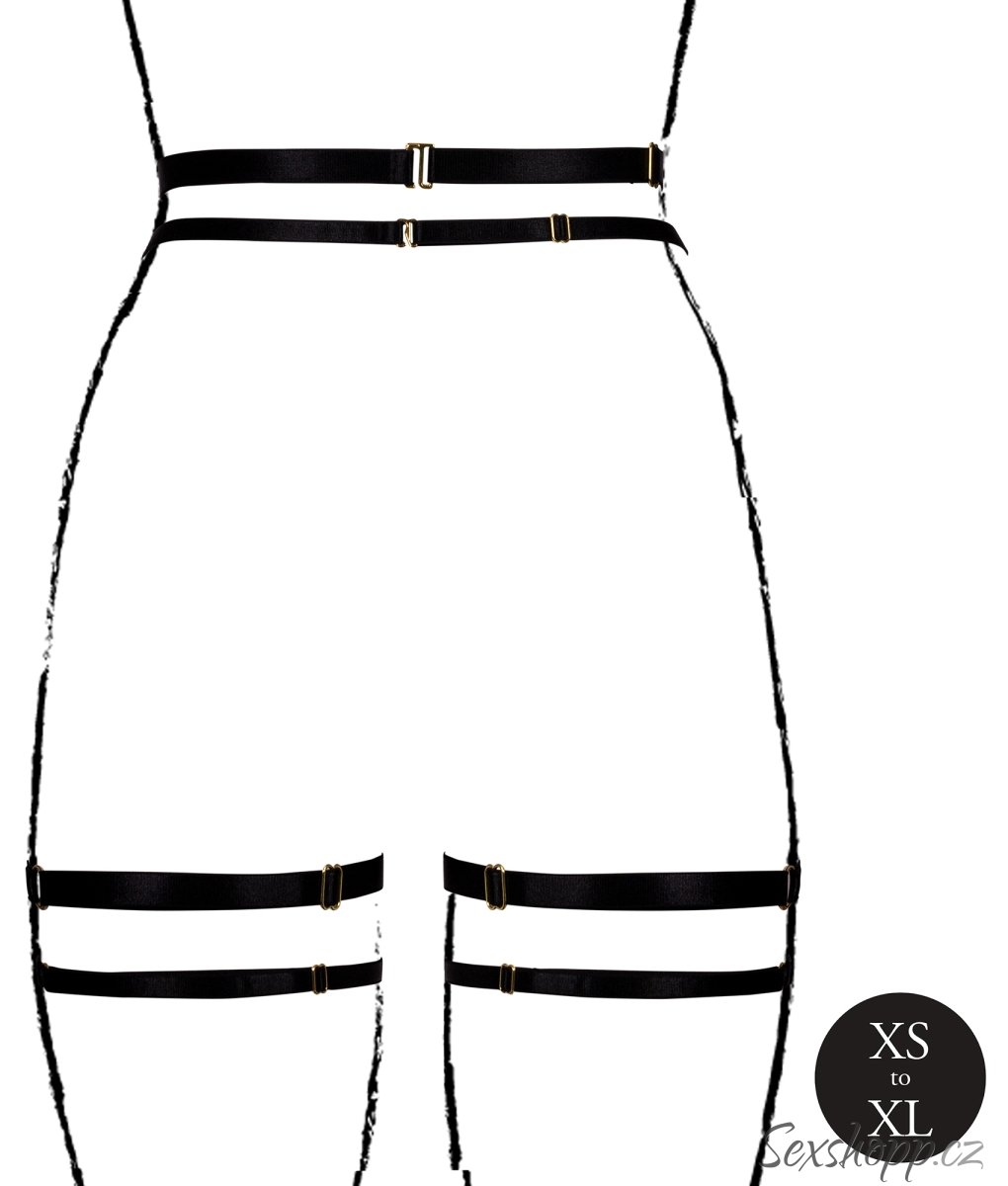 Podvazkový pás zvýrazní váš pas a je vyrobený z pružných textilních řemínků, které jsou délkově nastavitelné – velikost pásu i podvazků si tak snadno upravíte podle potřeby.
