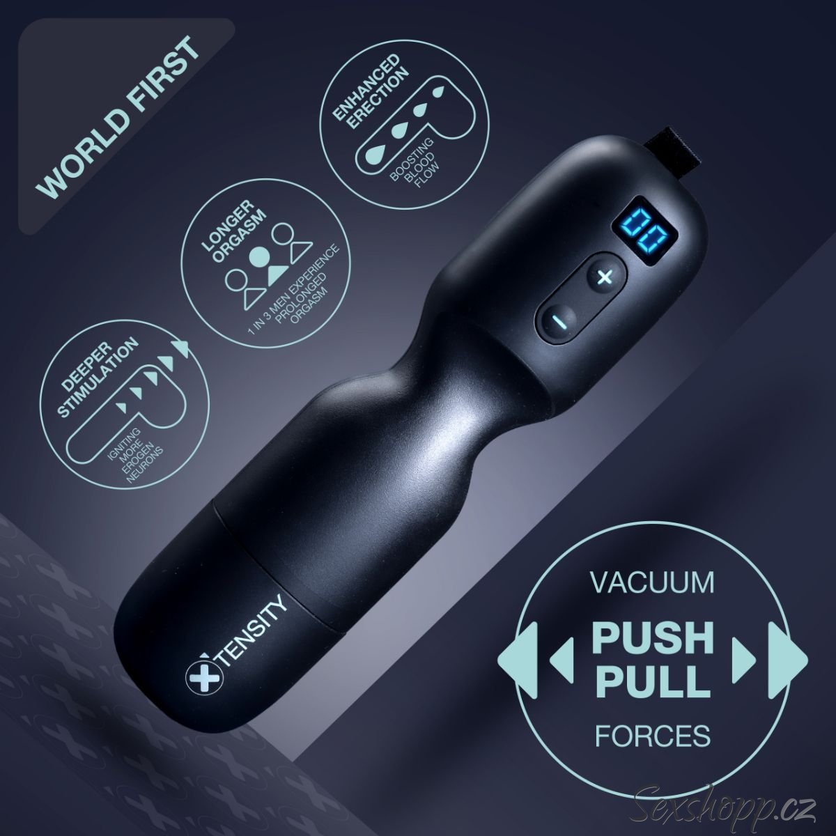 Technologie Xtensity stimuluje penis, erektilní tkáň, erektilní svaly a svaly pánevního dna – oproti jiným masturbátorům tak "zasáhne" více erotogenních nervů. Výsledek? Zcela nový způsob, jak zvýšit prokrvení penisu, zlepšit erekci a zažít intenzivní orgasmus (mnohdy i prodloužený).