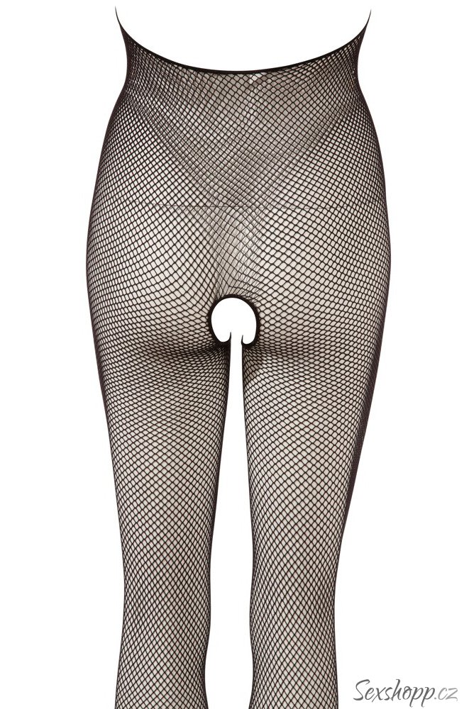 Síťovaný catsuit s límečkem a otvory na prsou a v rozkroku NO:XQSE