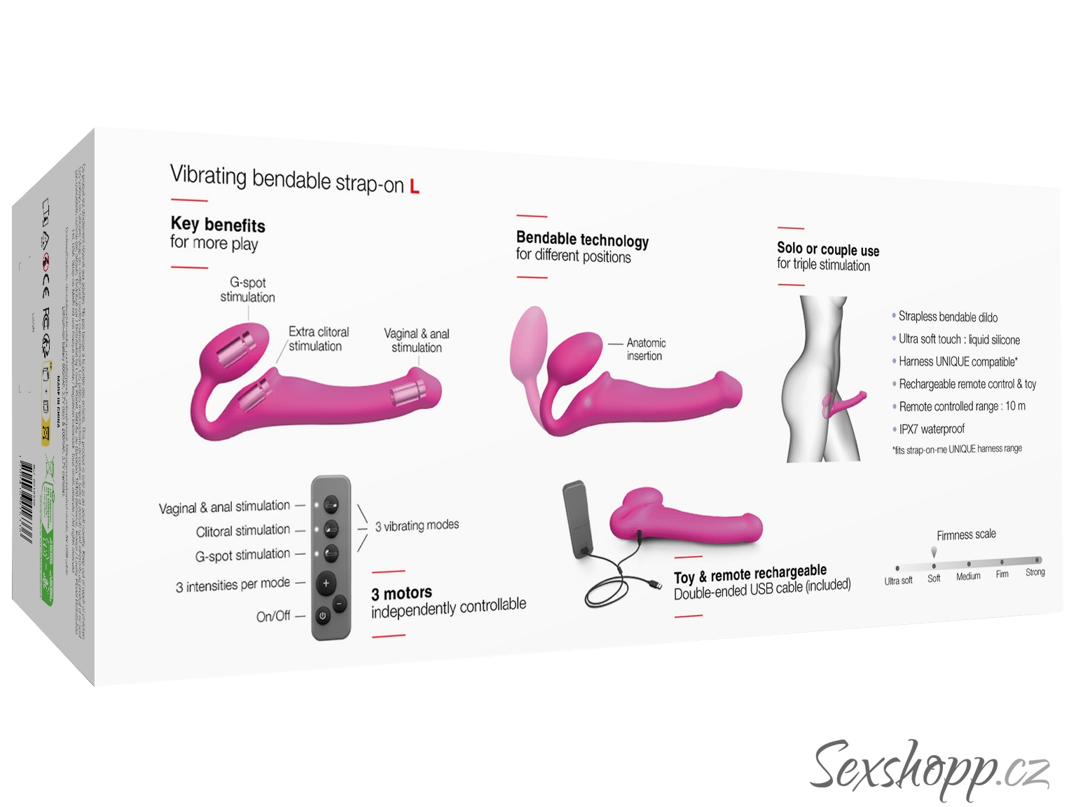 • Obsah balení: strapon, ovladač, nabíjecí kabel, látkový pytlík