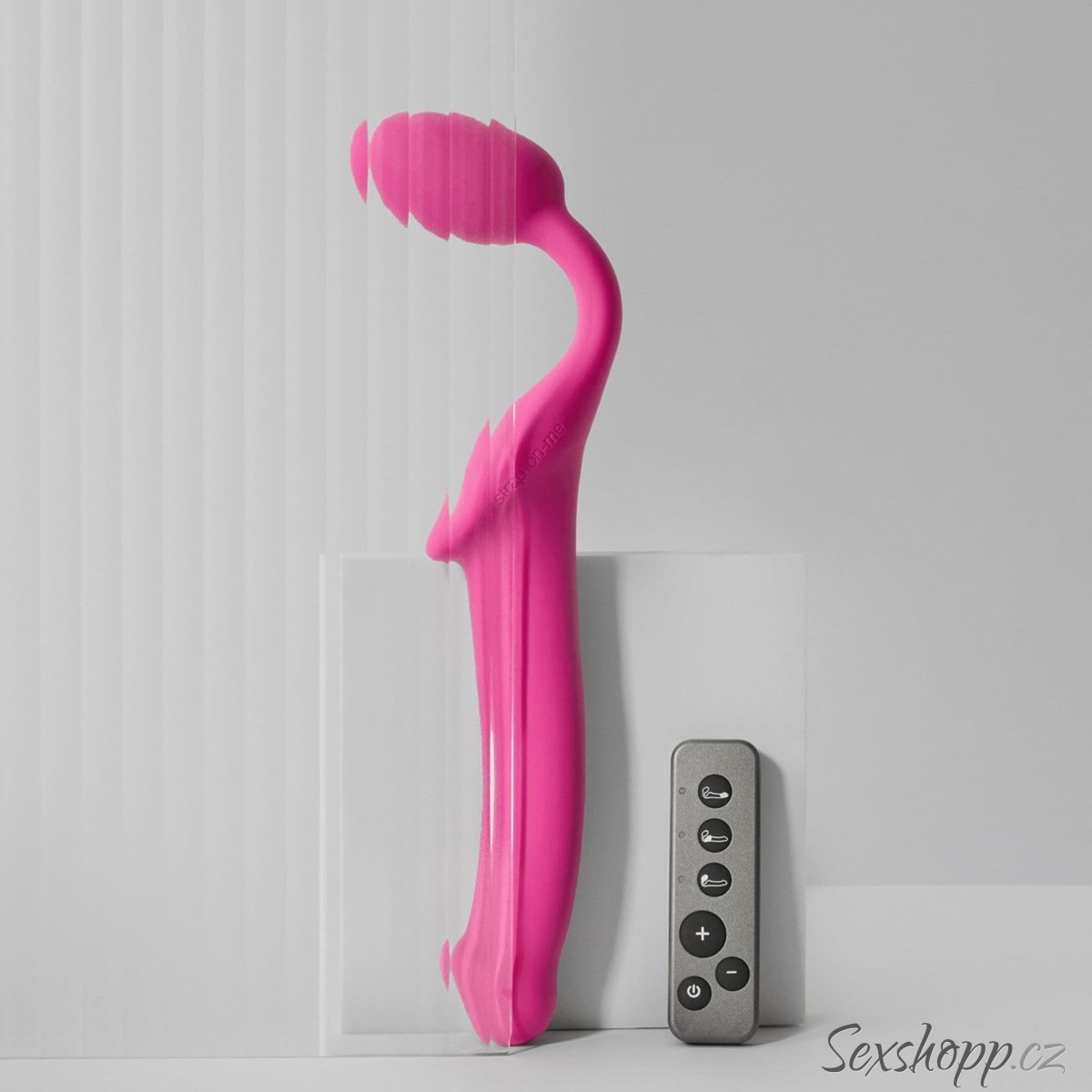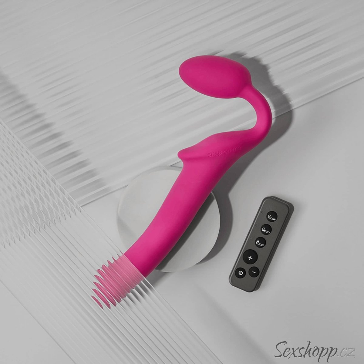 Připínák má 3 motorky, které můžete ovládat nezávisle na sobě. Díky anatomickému tvaru a tvarovatelné vaginální části ho můžete používat bez popruhů.