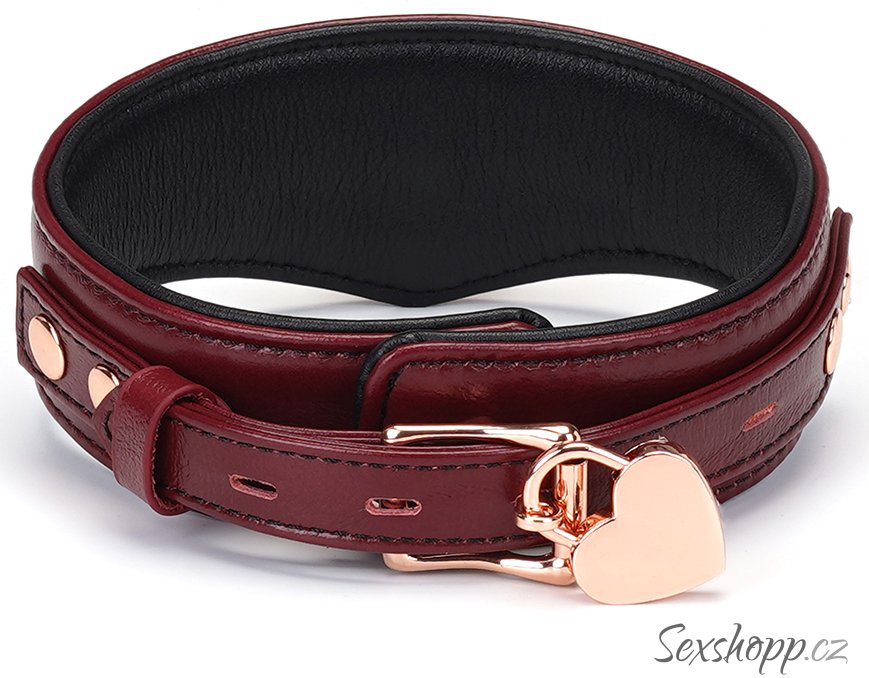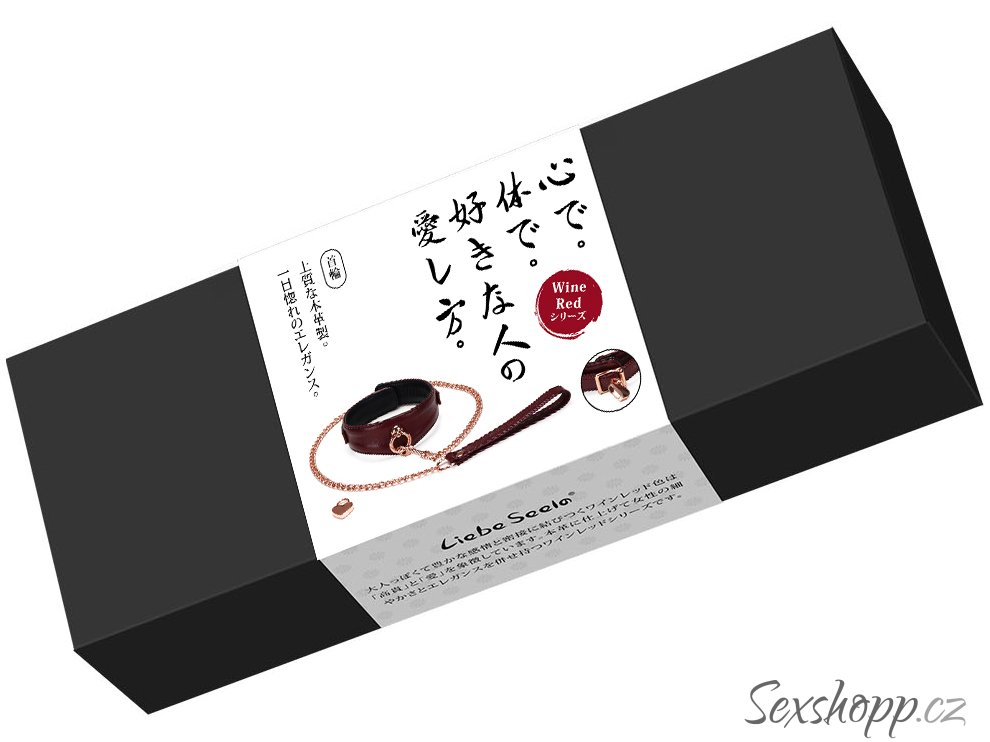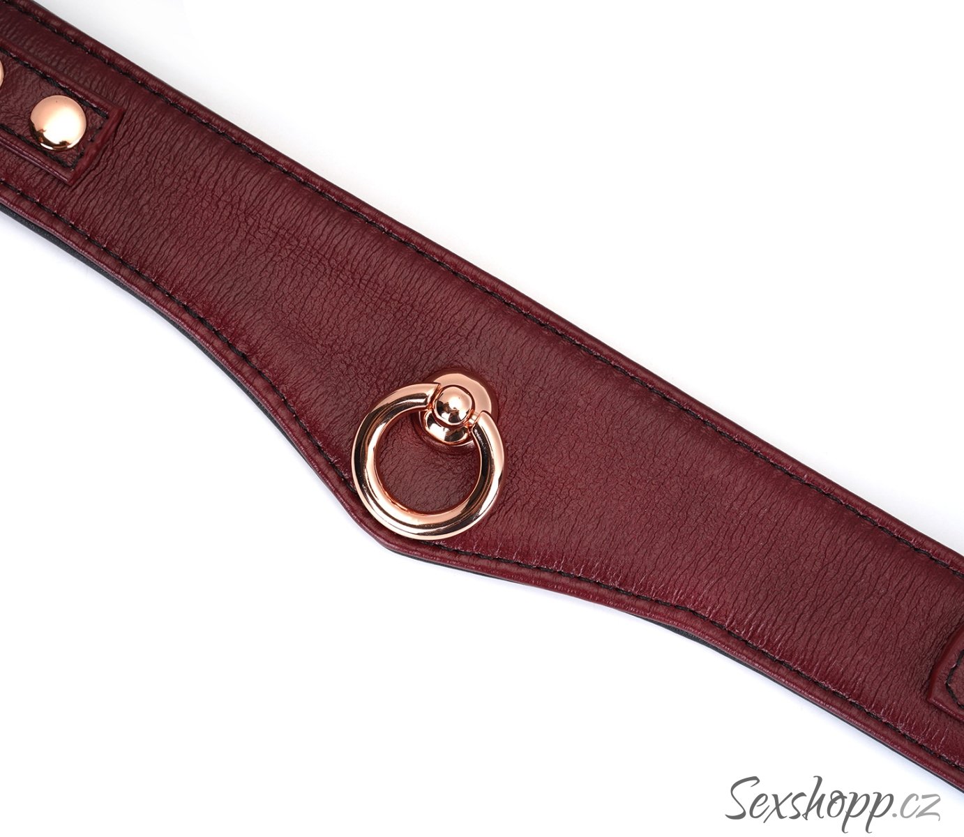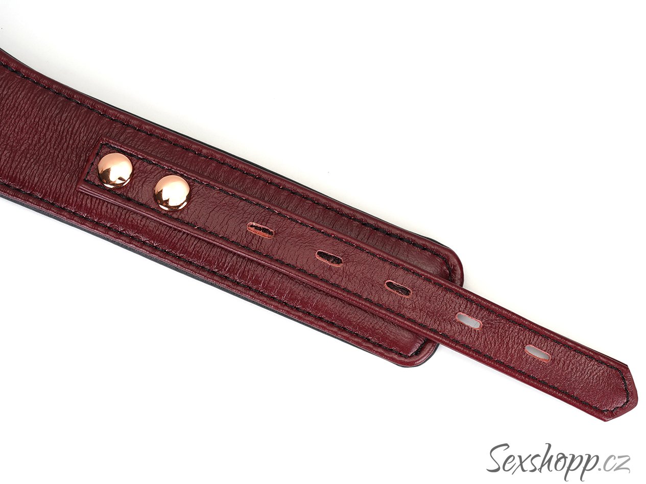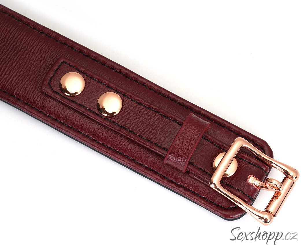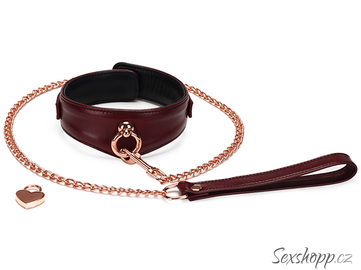 Uzamykatelný kožený obojek s vodítkem Liebe Seele Wine Red