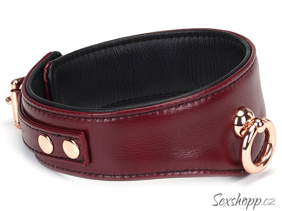 Obojek i vodítko jsou vyrobeny z kombinace měkké pravé kůže v barvě červeného vína a kovu. Obojek je z vnitřní strany změkčený pro pohodlnější nošení.