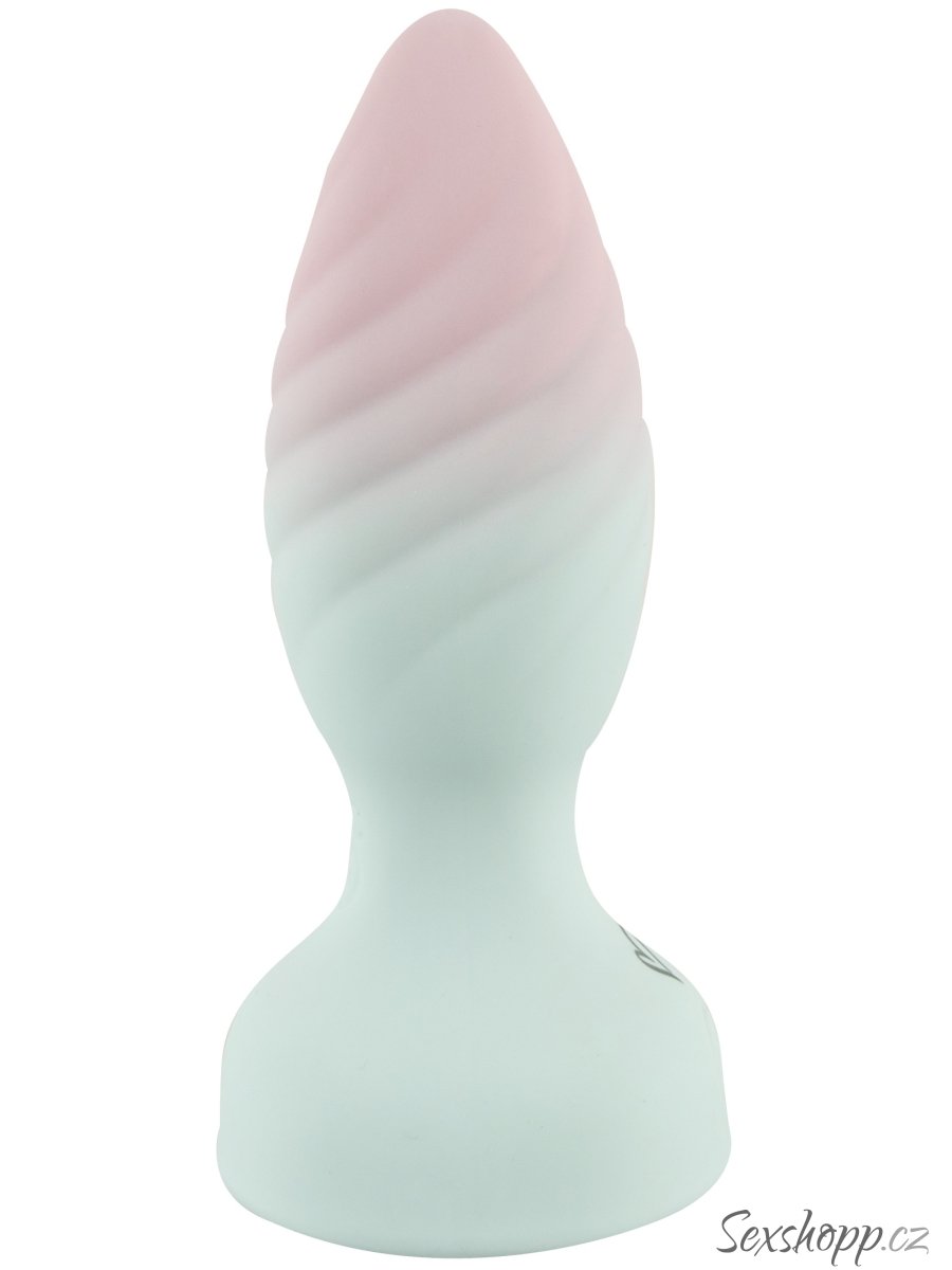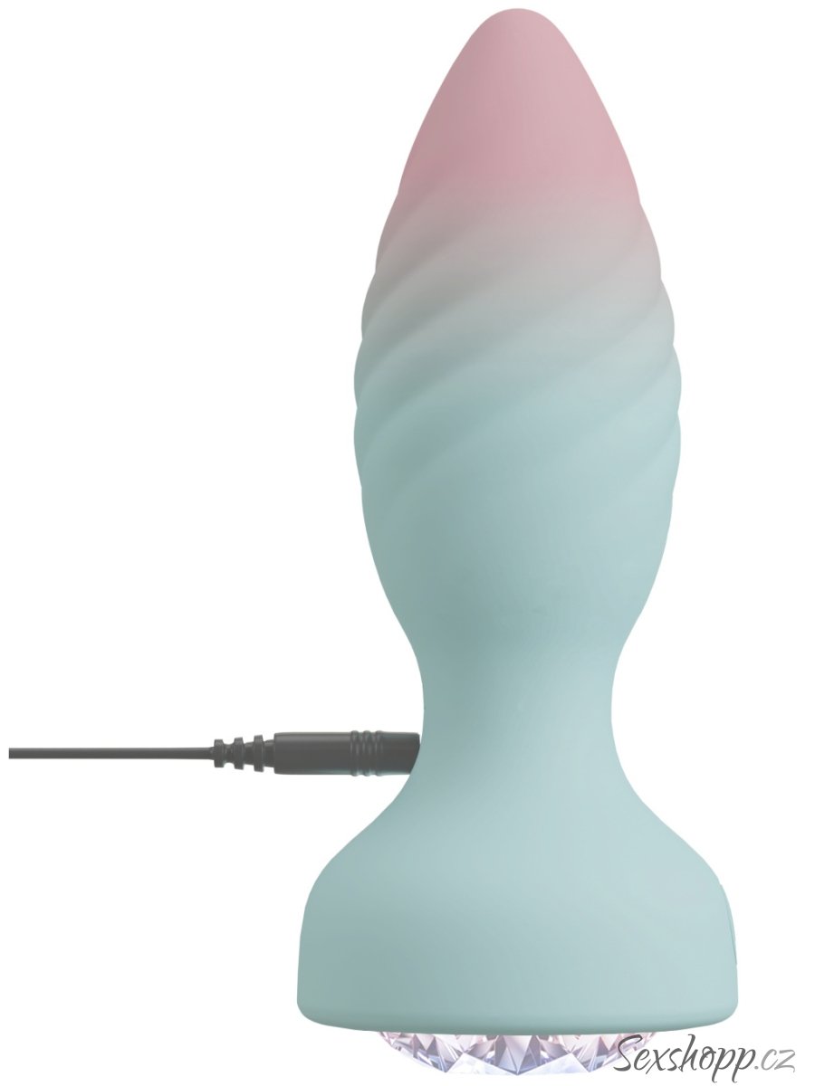 Kolík je ozdobený čirým krystalem a má silné a hluboké vibrace a ohebný výstupek pro vnější stimulaci. Dá se pohodlně ovládat dálkovým ovadačem.