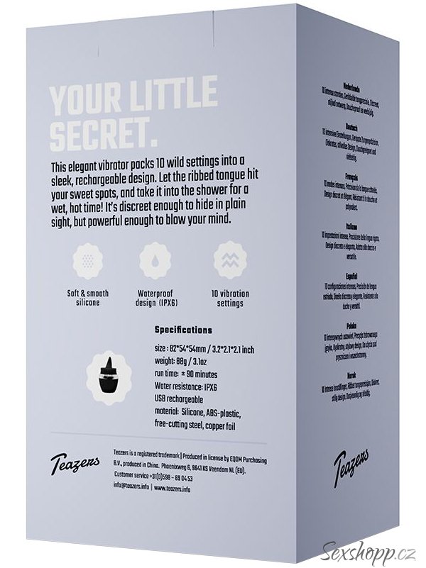 Stimulátor napodobuje orální sex pohyblivým vibračním jazýčkem. Vibrace jsou extra silné a hluboké a celkem se můžete těšit na 10 stimulačních módů (3 intenzity + 7 vzorů).
