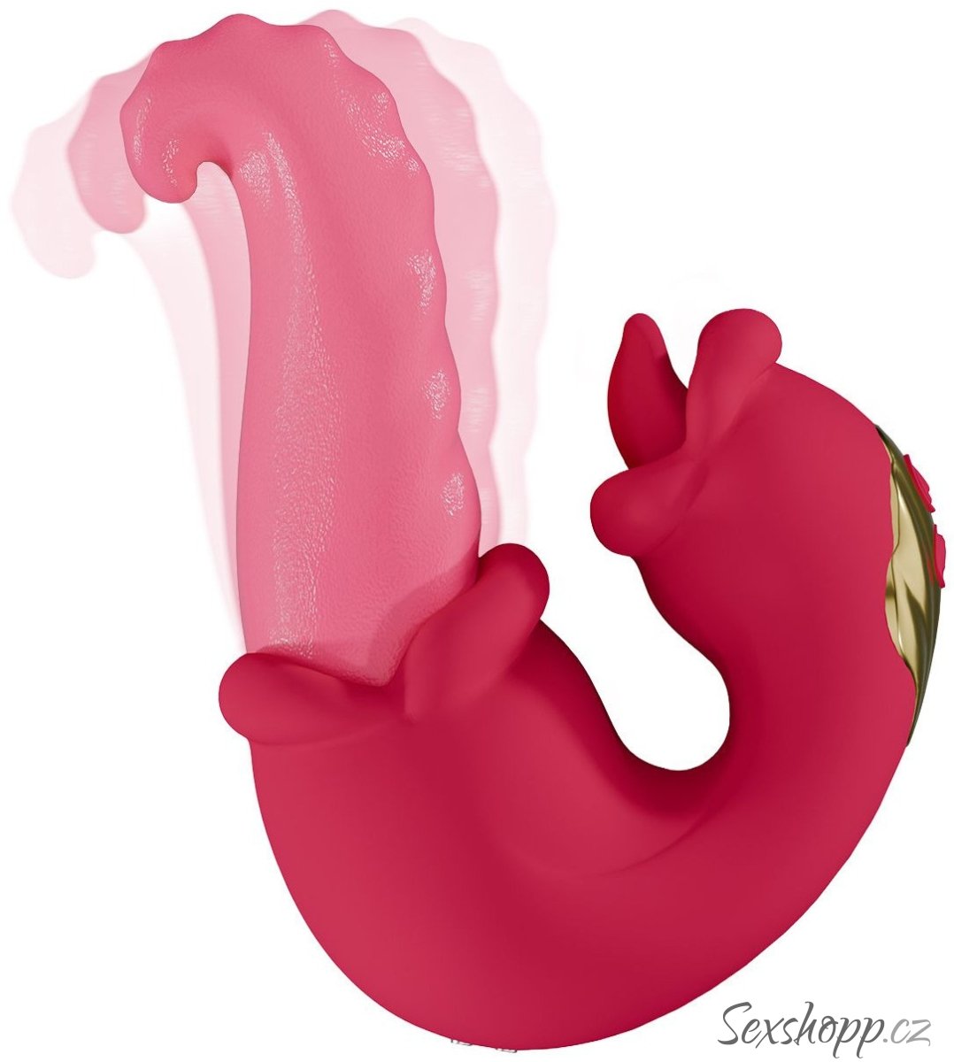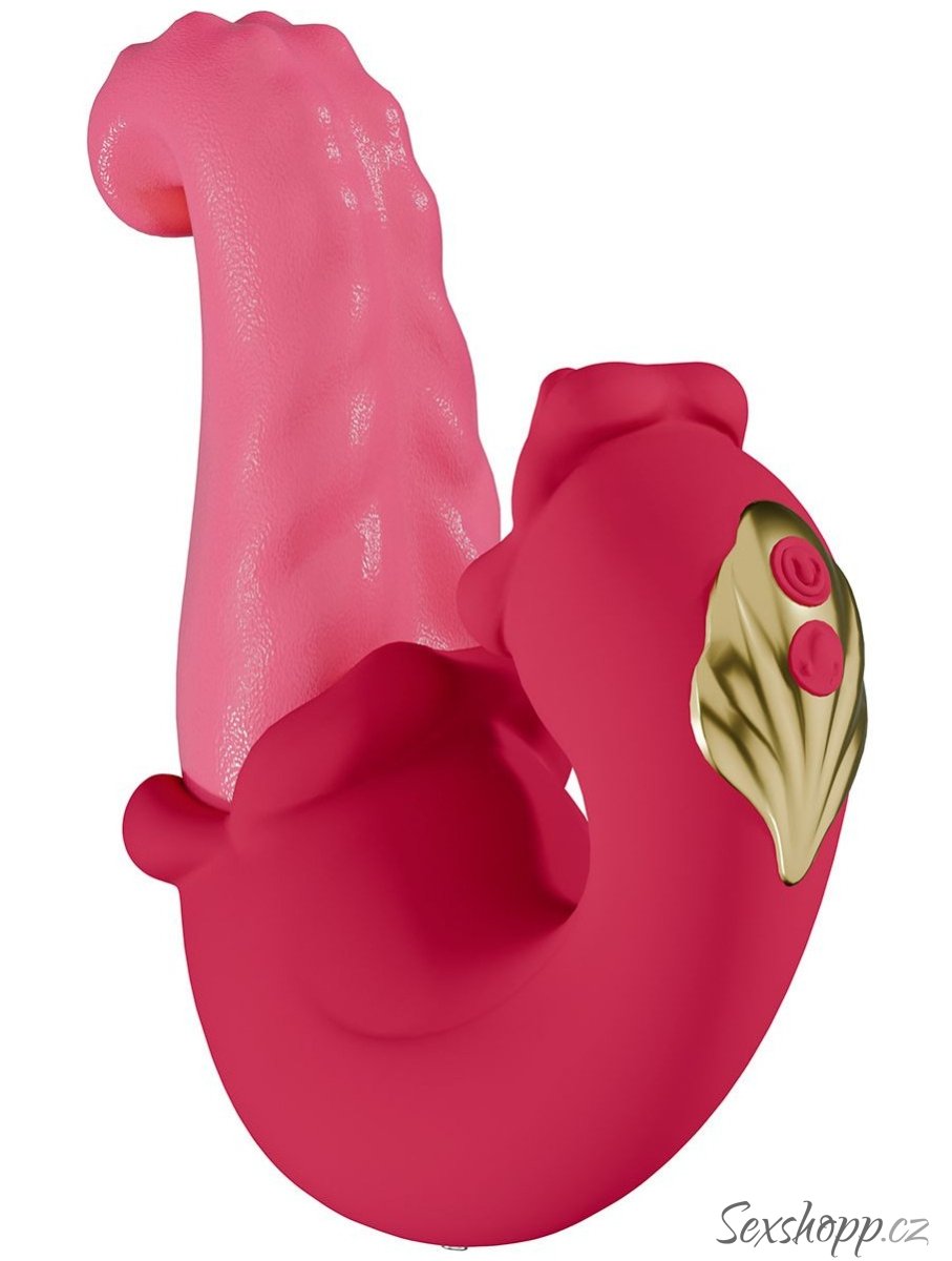 Vibrátor má dva měkké jazyky – ten větší rotacemi a vibracemi promasíruje bod G, ten menší provibruje klitoris.